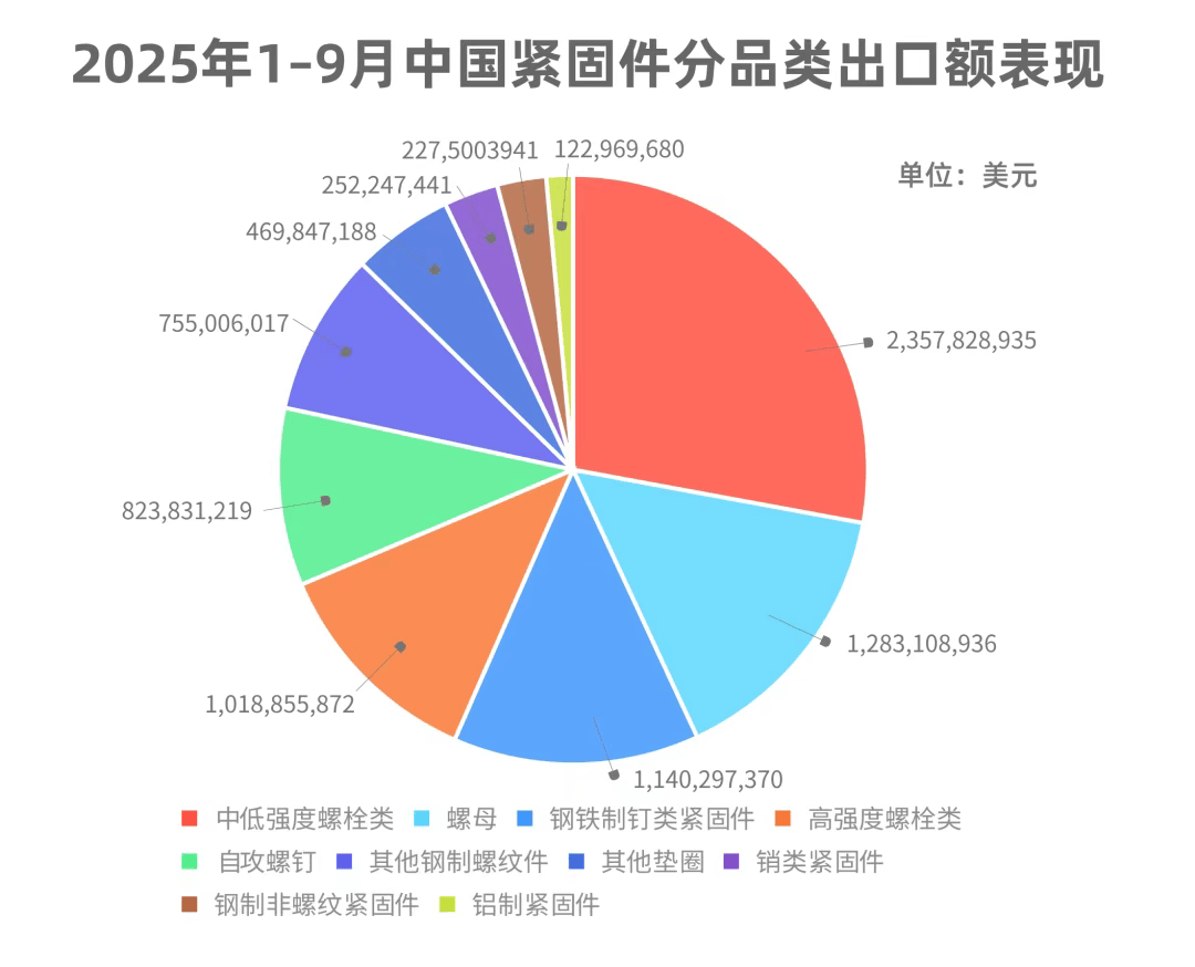 从商品结构看,中国紧固件出口依然以传统大类为主,但产品附加值正在逐步提升。其中,高强度螺栓、钢制钉、螺母三大类占据出口总额近65%,但价格水平略有回调,体现出建筑、机械、电子装配等领域的持续需求。